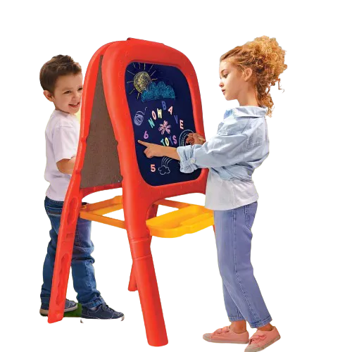 - Double-sided design: One side is a blackboard for writing with chalk, and the other side is a whiteboard for use with markers, allowing children to enjoy both surfaces.
